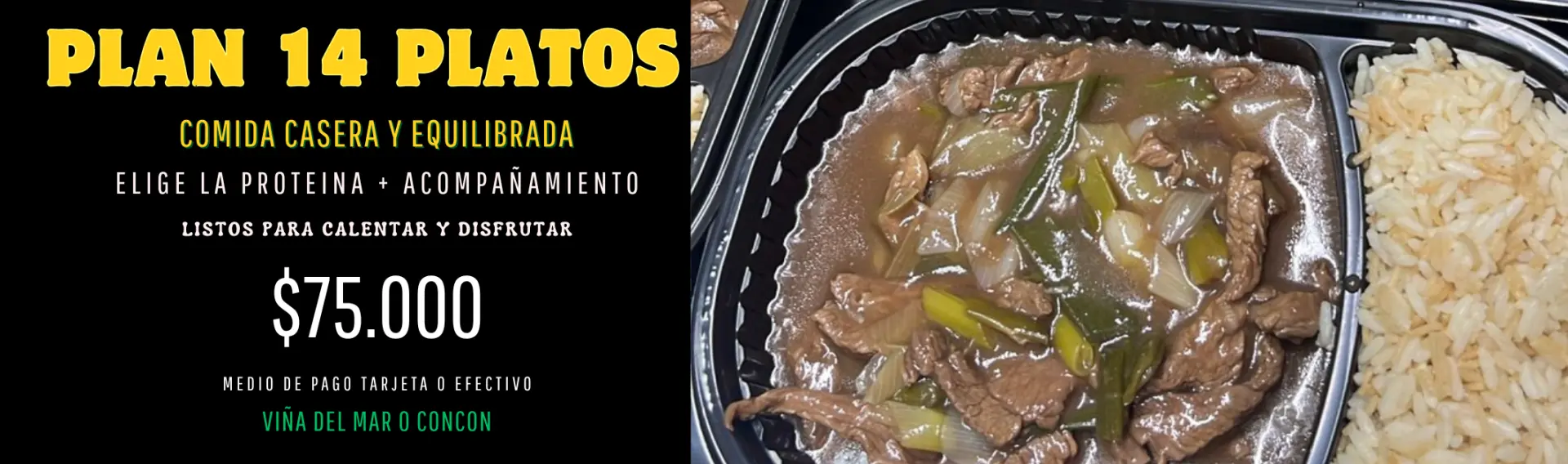Plan de 14 platos preparados por tan solo $75.000. Elegimos los mejores ingredientes con un sabor casero inigualable. Sin preservantes y aditivos.